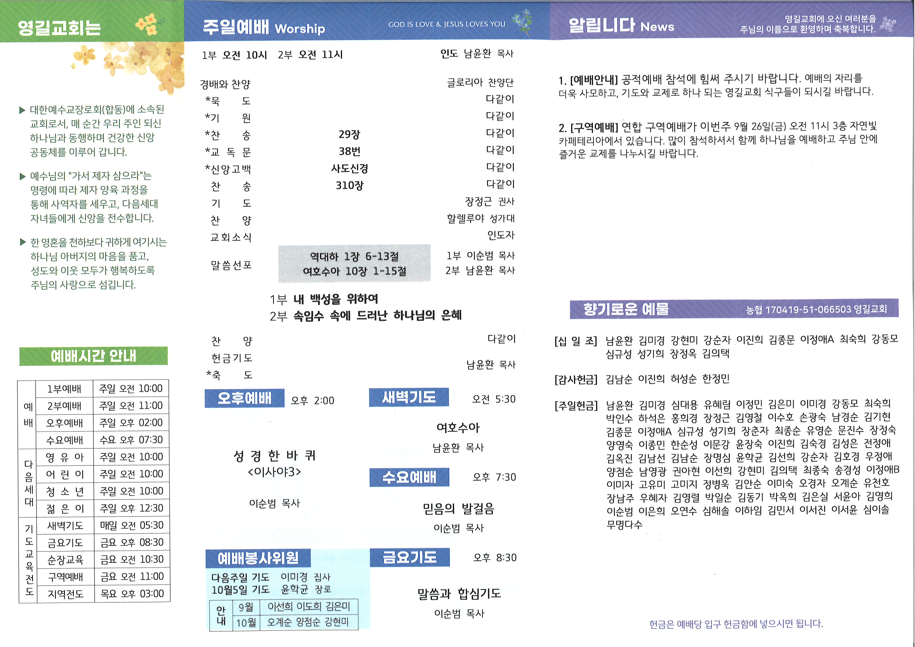 2025년 09월 21일 주일예배 주보